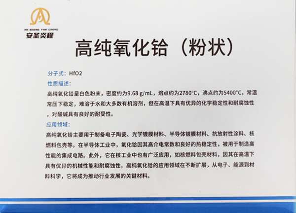氧化铪(HfO₂)是一种重要的无机化合物,在多个高科技领域有广泛应用。其主要特性与相关信息如下: